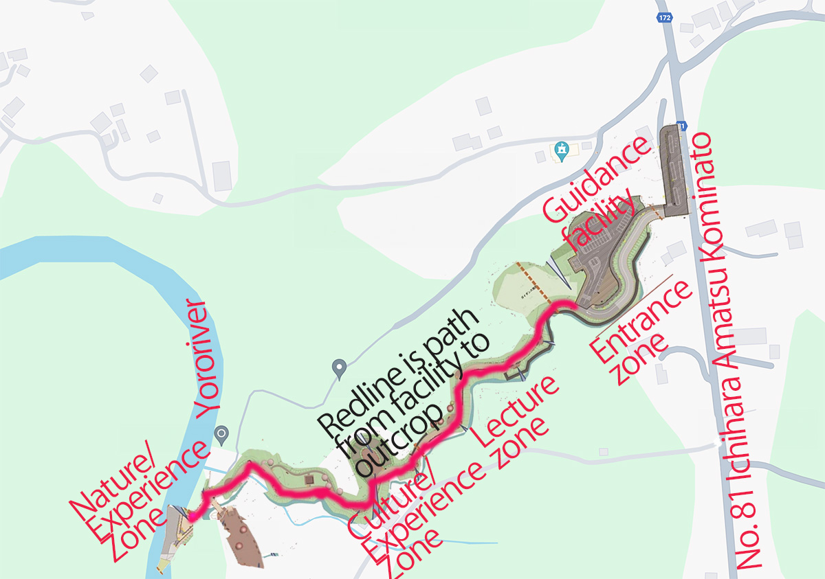 At present, the access route to the outcrop is a steep, partially unpaved slope with three staircases. Furthermore, the river bank around the outcrop is slippery and sloping, and you will have to walk in shallow water. For this reason, wheelchair users are looking forward to improvements to the surrounding tour environment.