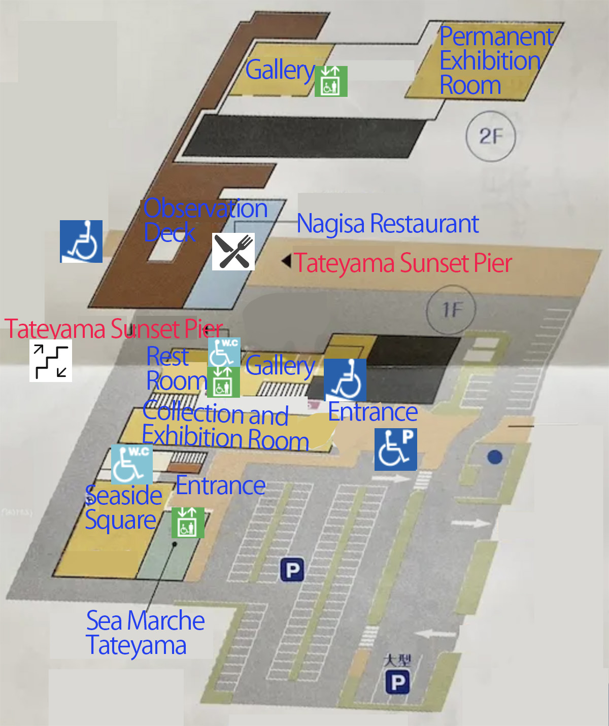 Sources of the above six images:Minato Oasis Nagisa no Eki Tateyama Wheelchair Accessible Tourist Guide Barrier-free Information